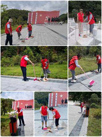 四、开展志愿清扫服务活动。全体党员在梅岭三章纪念馆广场周边开展卫生清扫活动,以实际行动缅怀革命先烈。